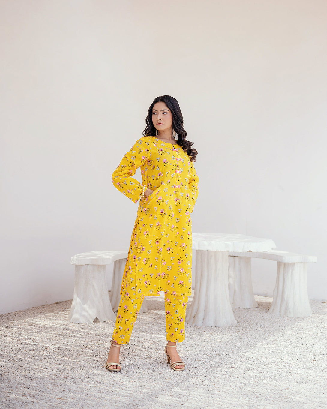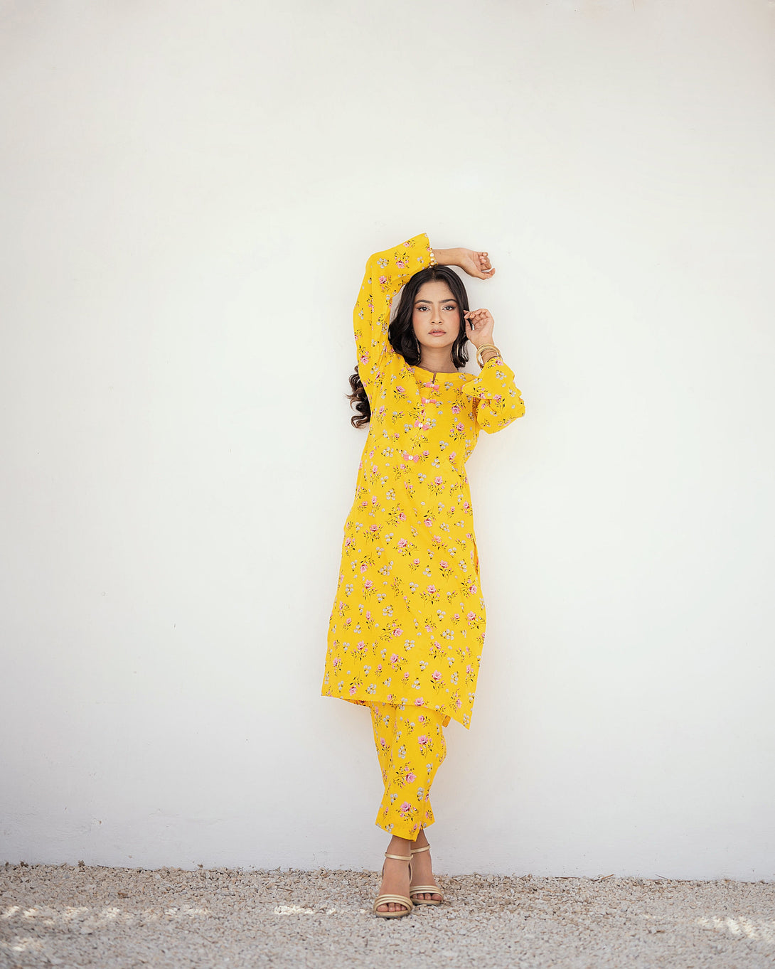 Fabric: Soft Lawn. Fit: Relaxed & Flattering. Digitally Printed. Shirt Solid. Matching Trouser Ideal for Everyday & Semi-Casual Wear.